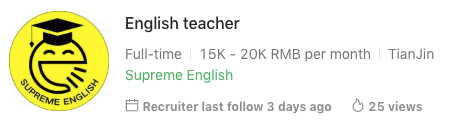 LOCATION: Tianjin Eco-city. Starting Date: ASAP SALARY AND BENEFITS: -Base salary: 15000-20000 + bonusaccording to recruit students) -All public holidays -one month winter vacation (20% paid) - free accommodation -Visa reimbursement provided -flight reimbursement -3000 rmb raised by signing a new academic year. WORK DESCRIPTION: -Age: 3-12years old -Class size: 6 students -Duration of each class: 90mins -Teaching hours: 25 hours/week -Office hours: 15 hours/week -working time: Wednesday-Sunday