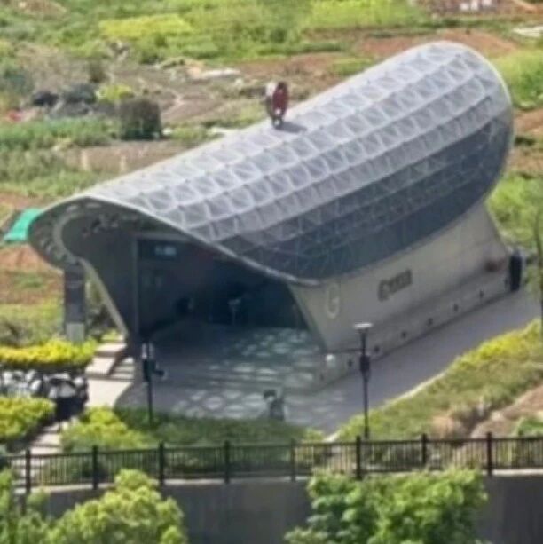 The entrance of Chuangjing Road Metro Station in Hangzhou sparked heated discussions on social media due to its "bizarre" design.