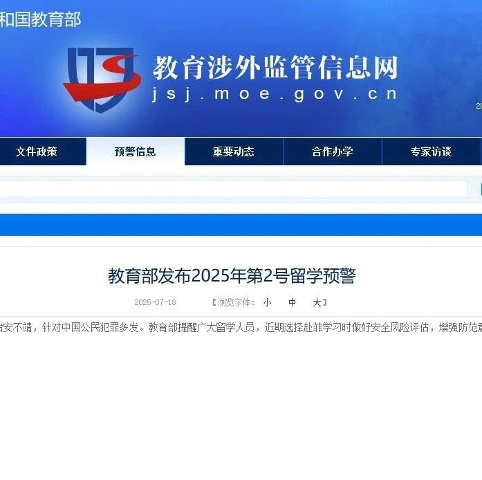 China's Ministry of Education has issued its second study abroad alert for 2025 on Friday, warning that the security situation in the Philippines has been unstable recently, with a surge in crimes targeting Chinese nationals. The ministry advised students to carefully assess safety risks and to strengthen their awareness and precautions when considering pursuing study in the Philippines.