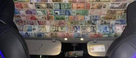 The interior of his car reflects these experiences. Banknotes from around the world, given as tips, now cover the roof of his vehicle. "The first one was a £5 note," he said proudly. "Each one is a memory."