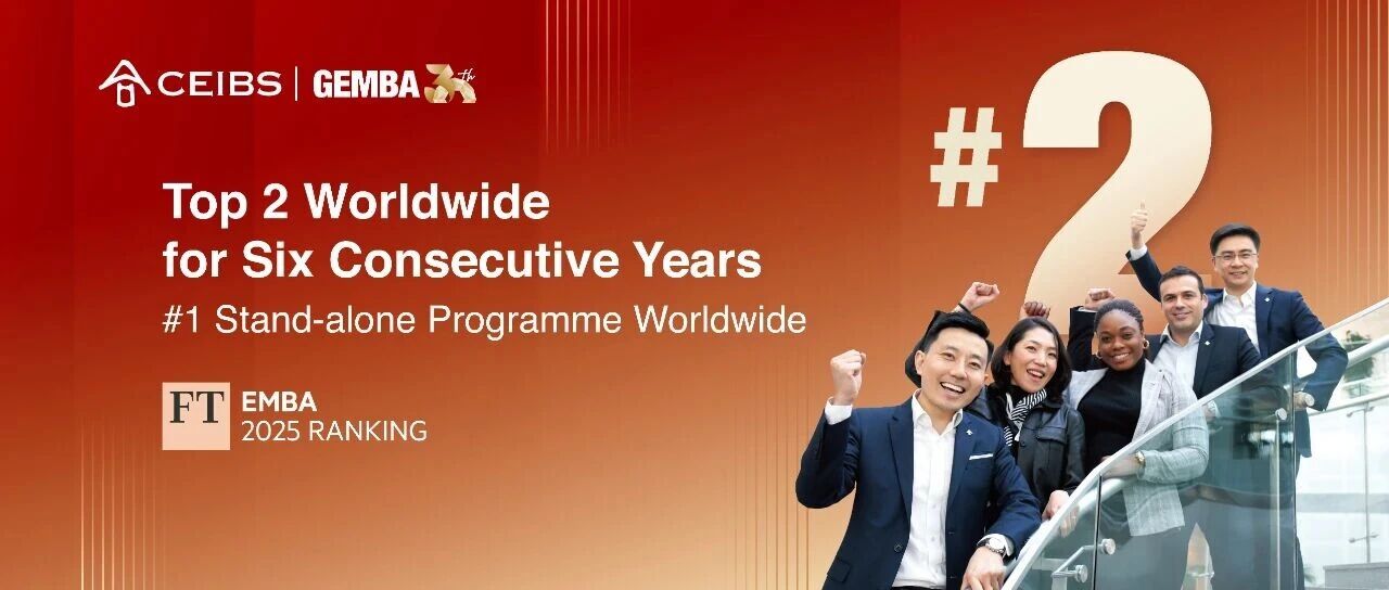 The CEIBS Global EMBA (GEMBA) programme has been ranked #2 in the world in the Financial Times 2025 Executive MBA Ranking, marking its sixth consecutive year among the global top two and its fourth consecutive year as the world's highest-ranked stand-alone EMBA programme.