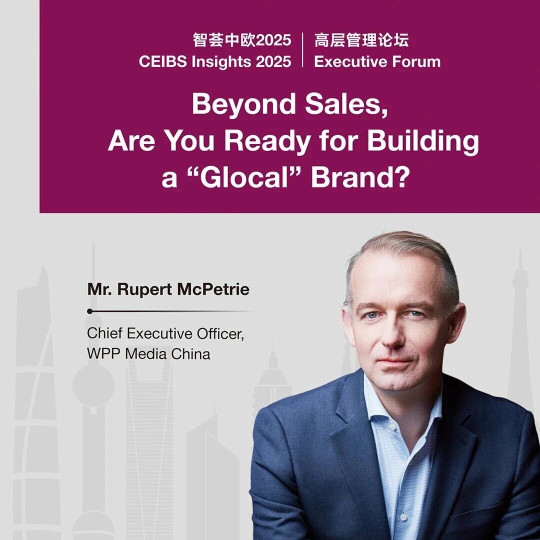 Join us for a CEIBS Executive Forum on November 12, 2025, with Mr. Rupert McPetrie, Chief Executive Officer of WPP Media China, who will give a keynote speech on the theme of Beyond Sales, Are You Ready for Building a "Glocal" Brand?