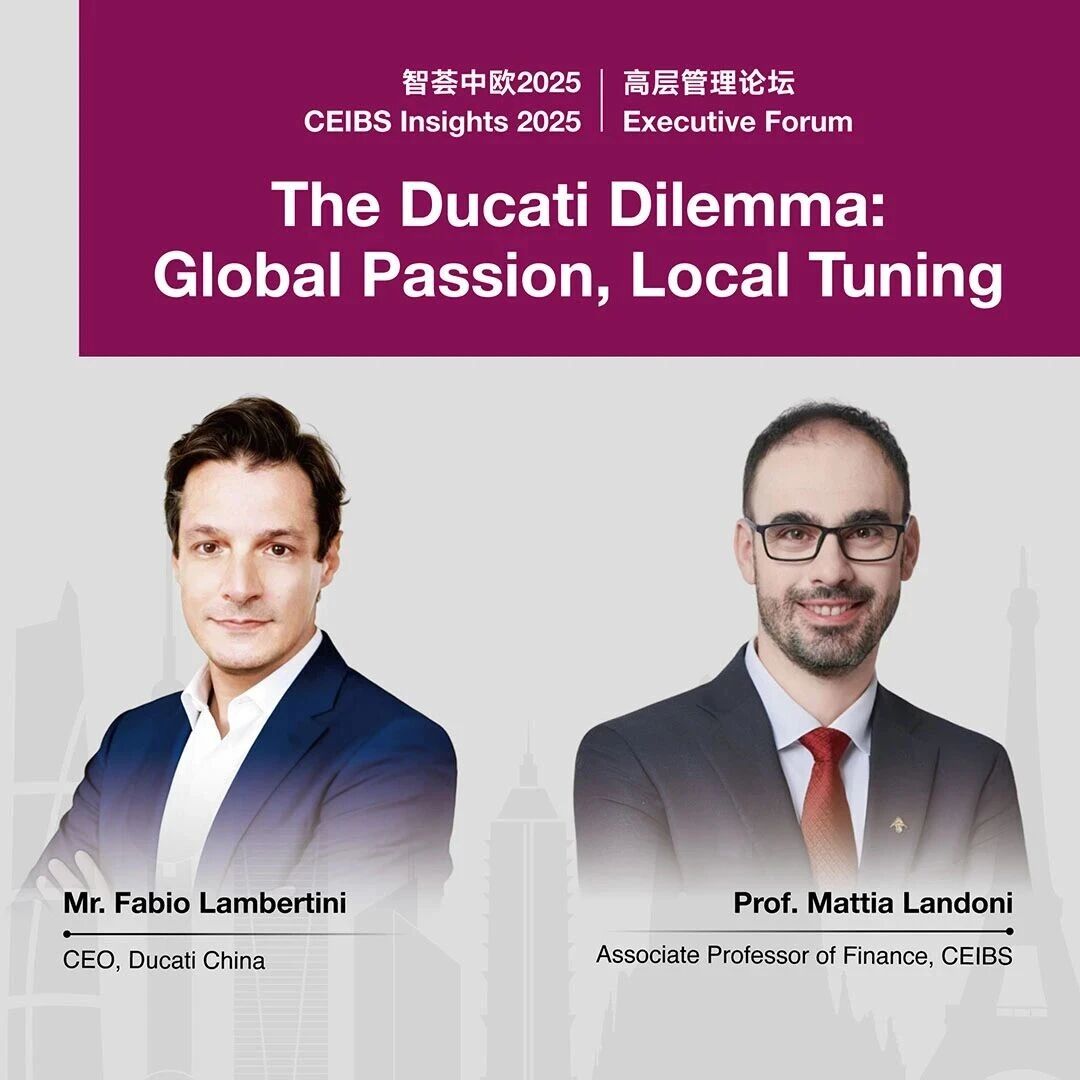 Join us for a CEIBS Executive Forum on December 2, 2025, with Mr. Fabio Lambertini, CEO of Ducati China, who will have a fireside chat with CEIBS Associate Professor of Finance Mattia Landoni on the theme of The Ducati Dilemma: Global Passion, Local Tuning.