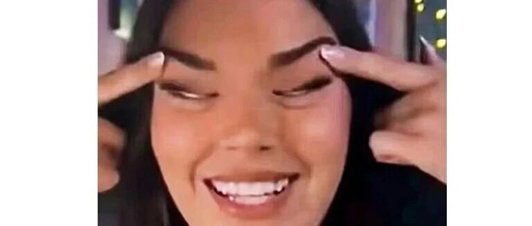 In the photo, the young woman is seen pulling her eyes with her fingers.
