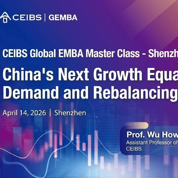 CEIBS Global EMBA Master Class (Shenzhen, Apr 14, 2026, 19:00-21:00). Prof. Wu on China's demand rebalancing & 15th Five-Year Plan. English, panel, networking.